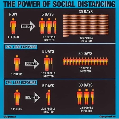 Bear in mind that, because the disease has a two-week window for incubation, we’ll only be seeing the true effect of the President’s policies by about next week Sunday. (i.e. The cases identified today were infected about two weeks ago) (The curve we are on will only start coming down next week.