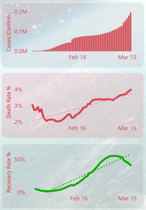 The stats in the graphs on the right are concerning. The global infection rate is ramping up. The death rate in China was 2% – they’re obviously tougher and have better health care, but now the death rate is over 4%.