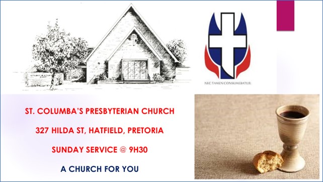 AnnouncementsAnnouncement – Live Holy Communion Sunday Service – 5 July 2020 04/07/202009/09/2021 St. Columba's Presbyterian Church Hatfield Holy Communion live on Sunday! Share this: Click to share on X (Opens in new window) X Click to share on Facebook (Opens in new window) Facebook Like Loading... Related