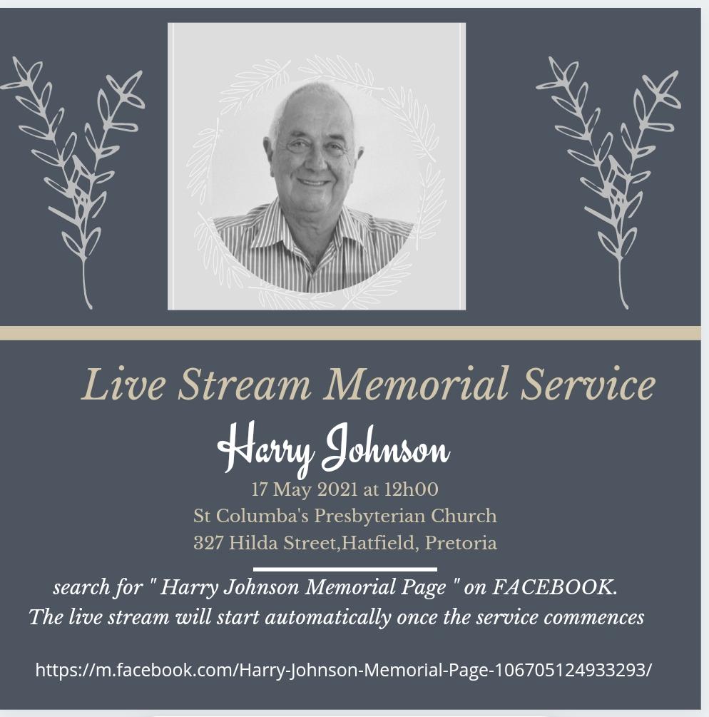 AnnouncementsMemorial Service – Mr Harry Johnson 17/05/202107/09/2021 St. Columba's Presbyterian Church Hatfield Link for Memorial Service https://www.facebook.com/Harry-Johnson-Memorial-Page-106705124933293/ Share this: Click to share on X (Opens in new window) X Click to share on Facebook (Opens in new window) Facebook Like Loading... Related