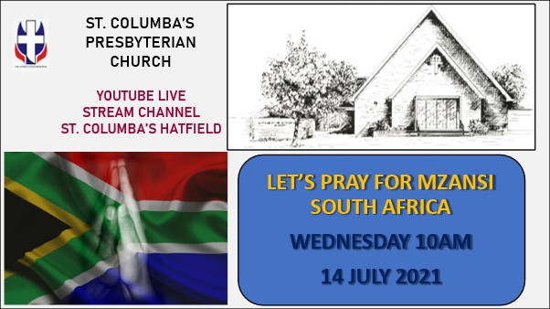for a simple Pray SA Mzansi Service for SA. πΏπ¦πΏπ¦πΏπ¦πΏπ¦Google: Youtube St. Columba’s Presbyterian, Hatfield at 10am. πΏπ¦ (Invitation from Rev Craig Morrison)