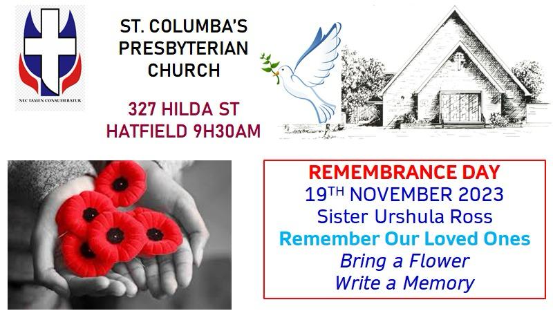 This Sunday 19th November, we host Remembrance Day to remember and celebrate the lives of all our loved ones who have passed on to khigher service. We invite you *bring a flower* to place and *to write some thoughts* about those whom we love and miss. The Garden of Remembrance will be open afterwards for prayers. The Memorial will be led by Mrs Urshula Ross, who recently preached a helpful sermon on Finding God in Grief. Grace and peace to you all!